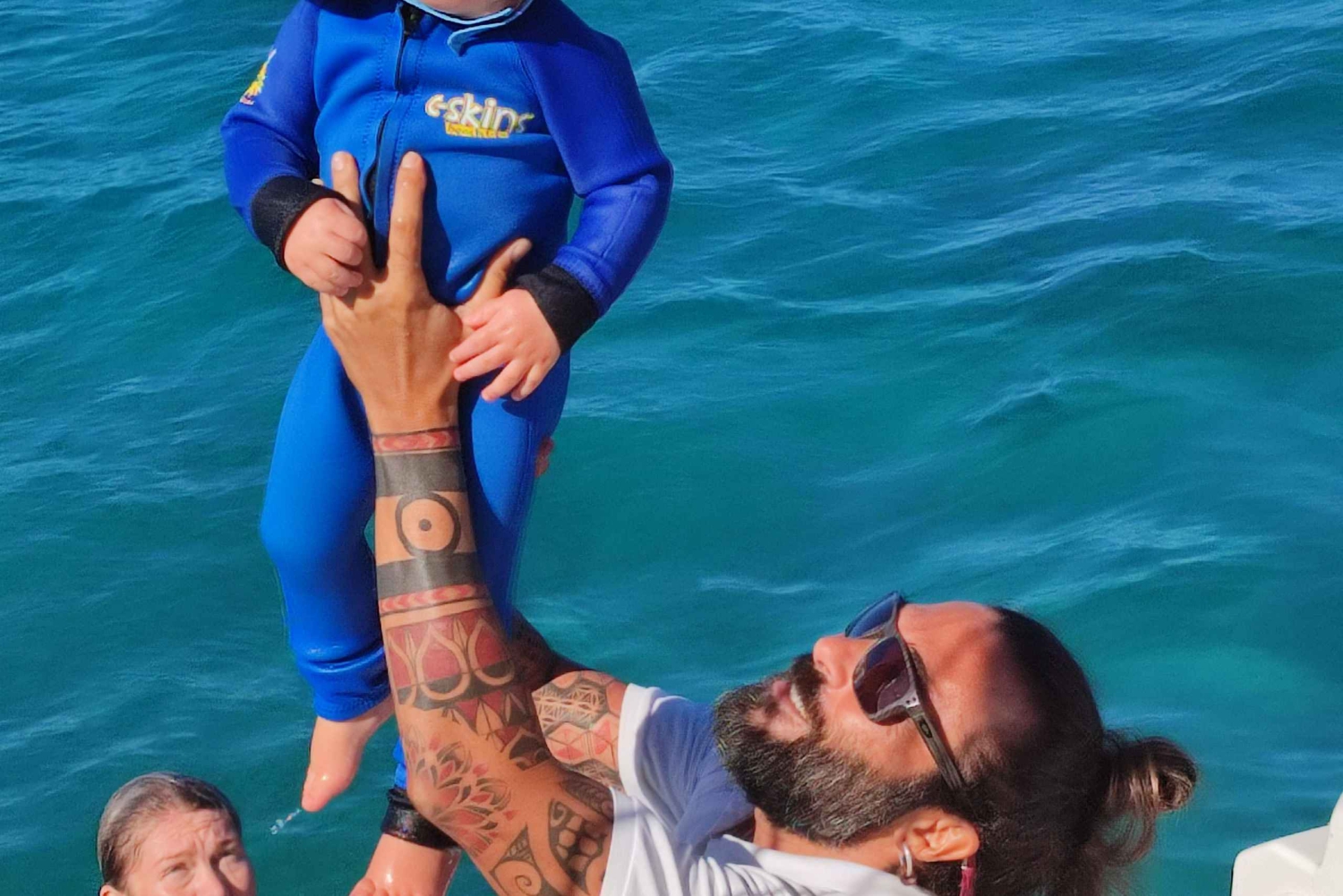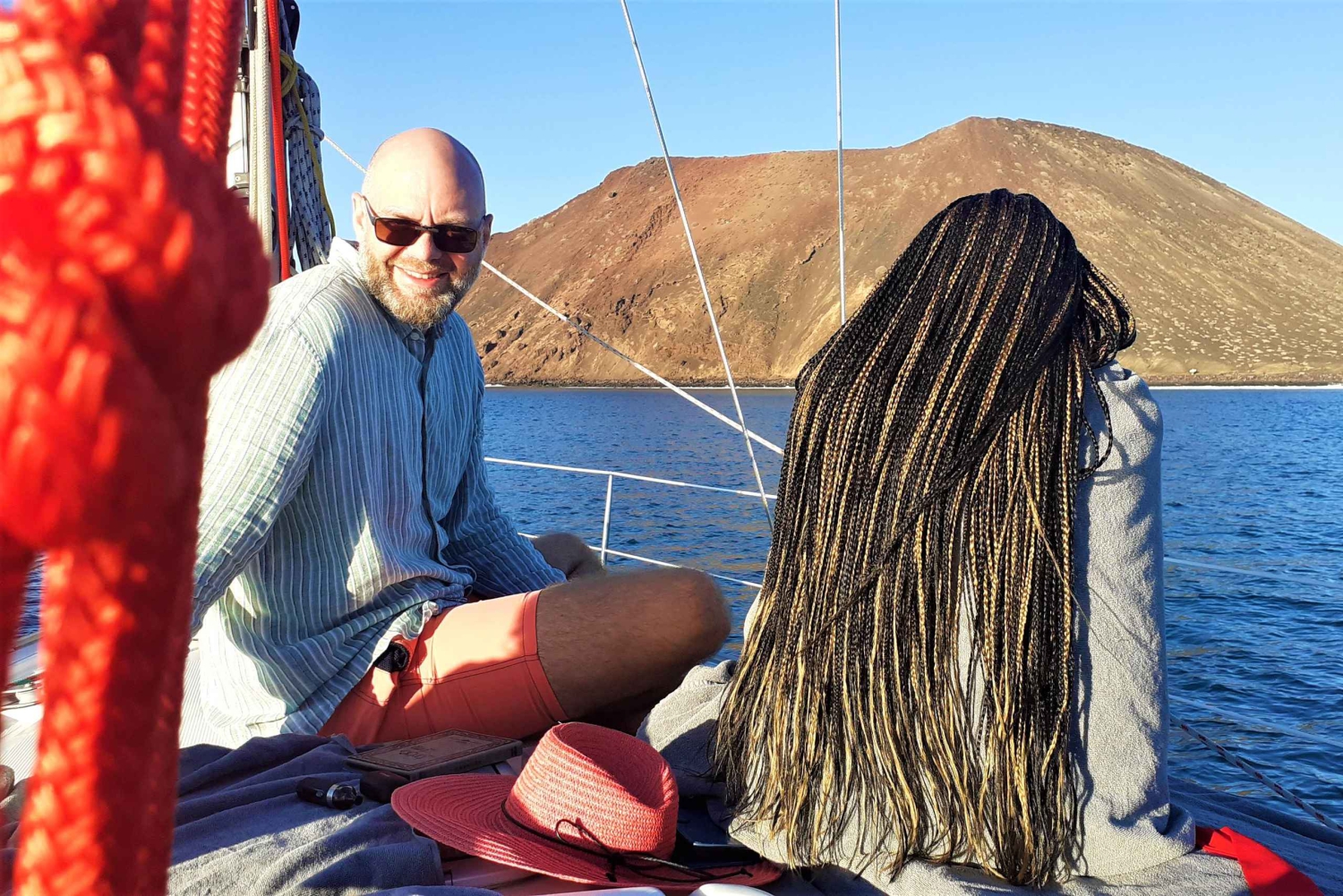 Det er en dynamisk udflugt, hvor vi sejler, svømmer, dyrker vandaktiviteter, slapper af og fortsætter med at sejle ... Altid omgivet af et meget specielt havmiljø, da vi har to naturparker omkring os: Isla de Lobos naturpark og Parque Natural Grandes Dunas de Corralejo naturpark. Vi gør dig til en del af navigationen, roret ... Du vil ønske at komme tilbage til repeat!!!!