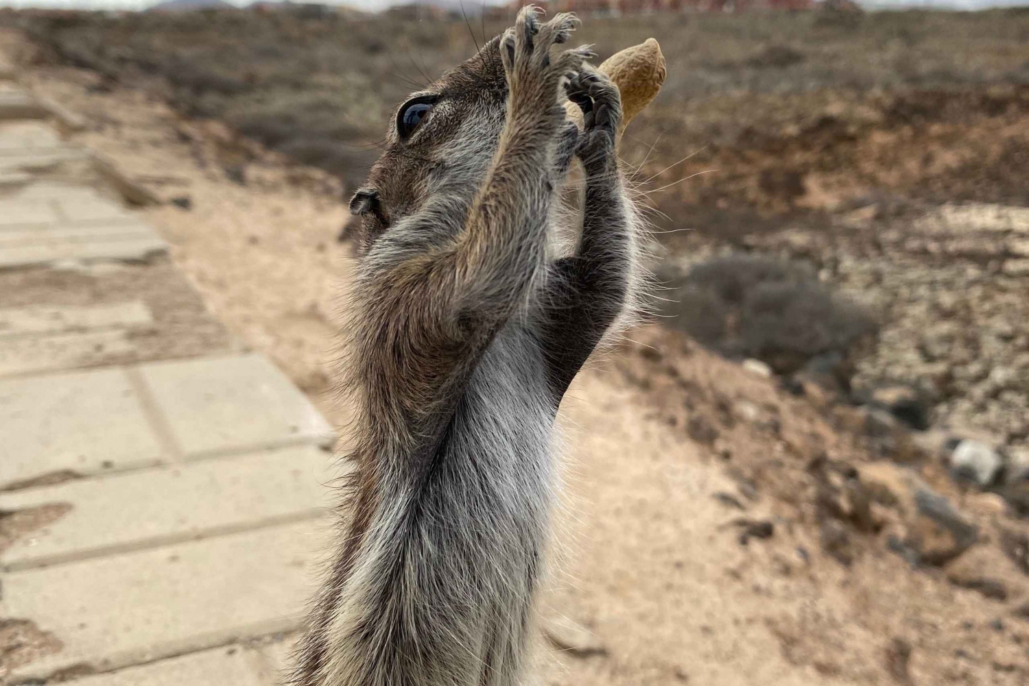 ¡Pero la aventura no acaba aquí! Continuaremos hacia el impresionante Parque Natural de Corralejo, hogar de las mayores dunas de Canarias y nombrado mejor destino veraniego de 2024 por National Geographic. Durante nuestro paseo, tendrás la oportunidad de conocer a las simpáticas ardillas listadas de Fuerteventura, pequeños habitantes de la isla que te regalarán momentos únicos y divertidos.