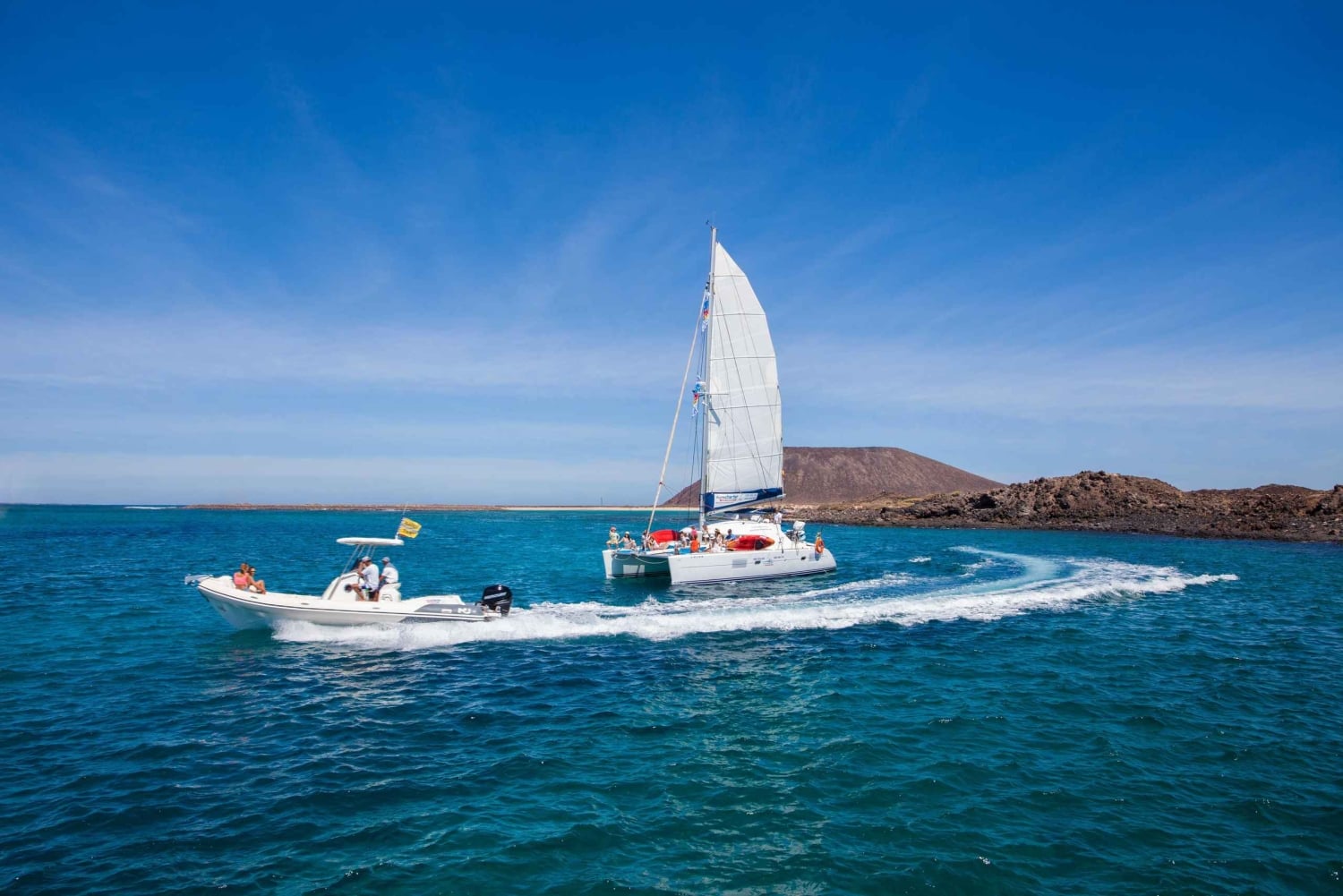 We'll start at the port of Corralejo, where we'll board one of our catamarans and head to Isla de Lobos.