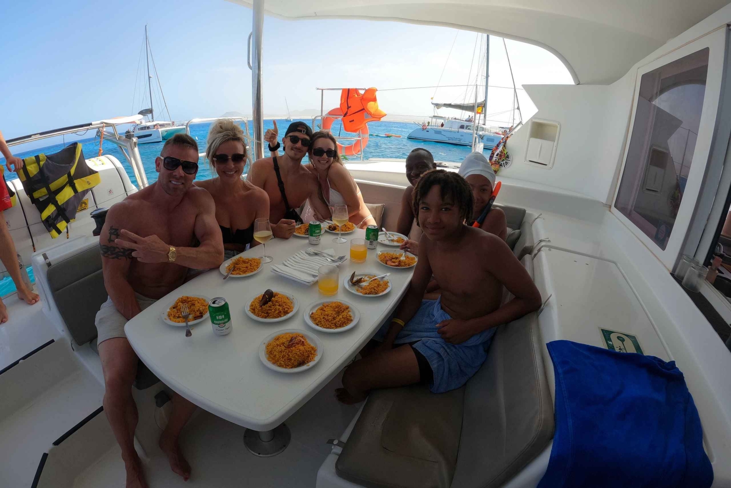 After both routes, we'll head back to the catamaran, where the experience continues. You'll have free time for swimming, water activities (snorkeling, kayaking, and paddle-surfing), and a delicious typical Spanish paella, accompanied by soft drinks, beer, and wine in a relaxed and premium atmosphere.