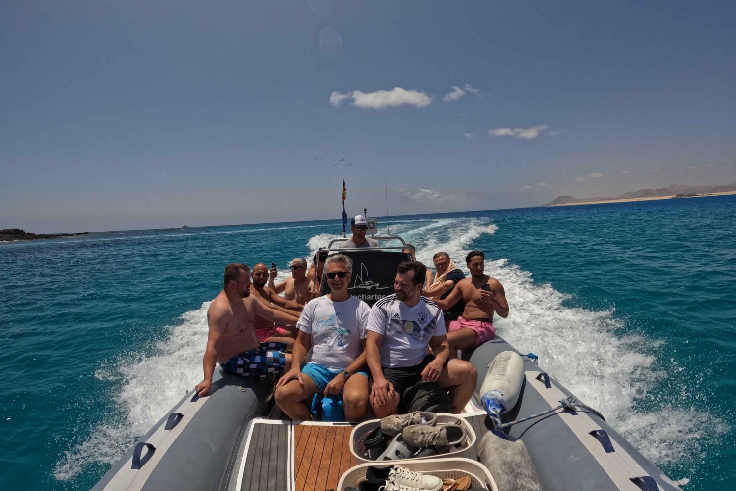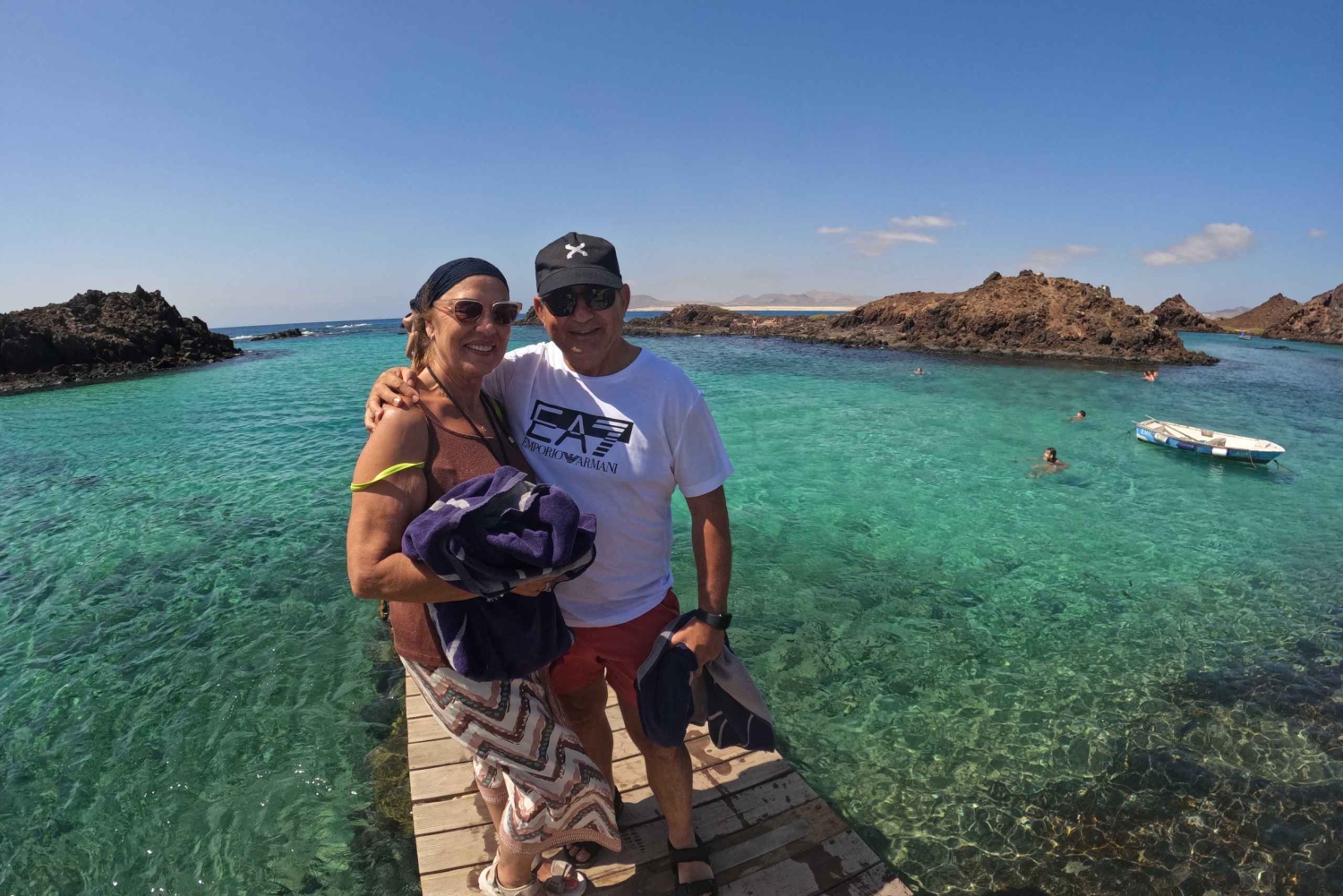 On board the speedboat, we'll make a complete tour of Isla de Lobos, getting to see coves, La Concha beach, La Caldera Mountain, the north of Isla de Lobos with the Roque Cercado, the Punta Martiño Lighthouse, and ending with the iconic Puertito de Isla de Lobos... spots inaccessible to larger boats. It's the most visual, fun, and complete way to get to know the island from the sea, combining agile navigation, stops for observation, and unique opportunities for photographs.