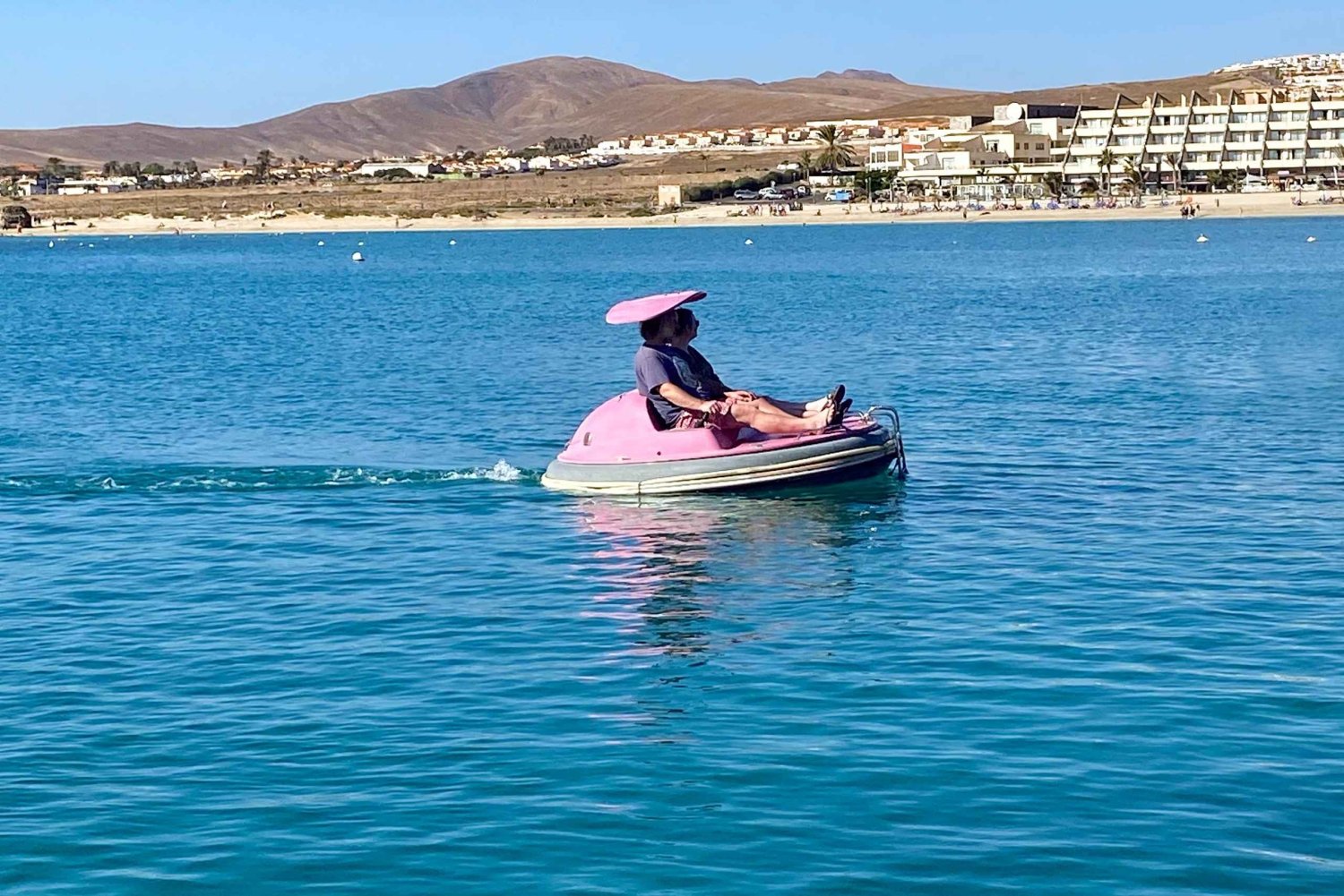Fai un giro su una barca elettrica intorno alla tranquilla baia di Caleta de Fuste.