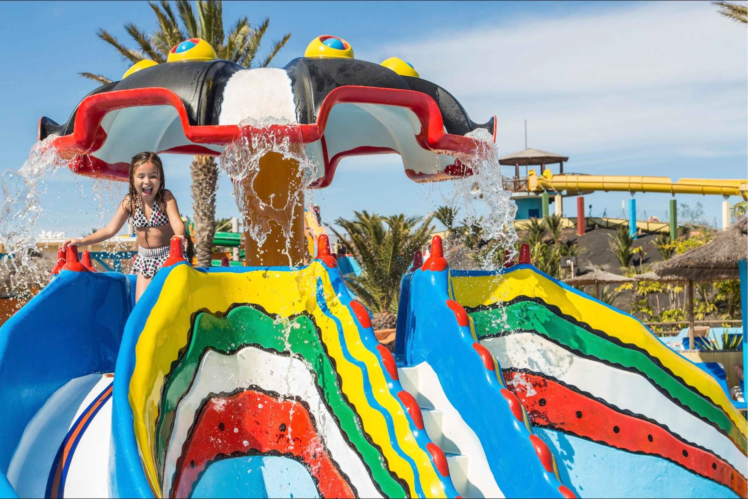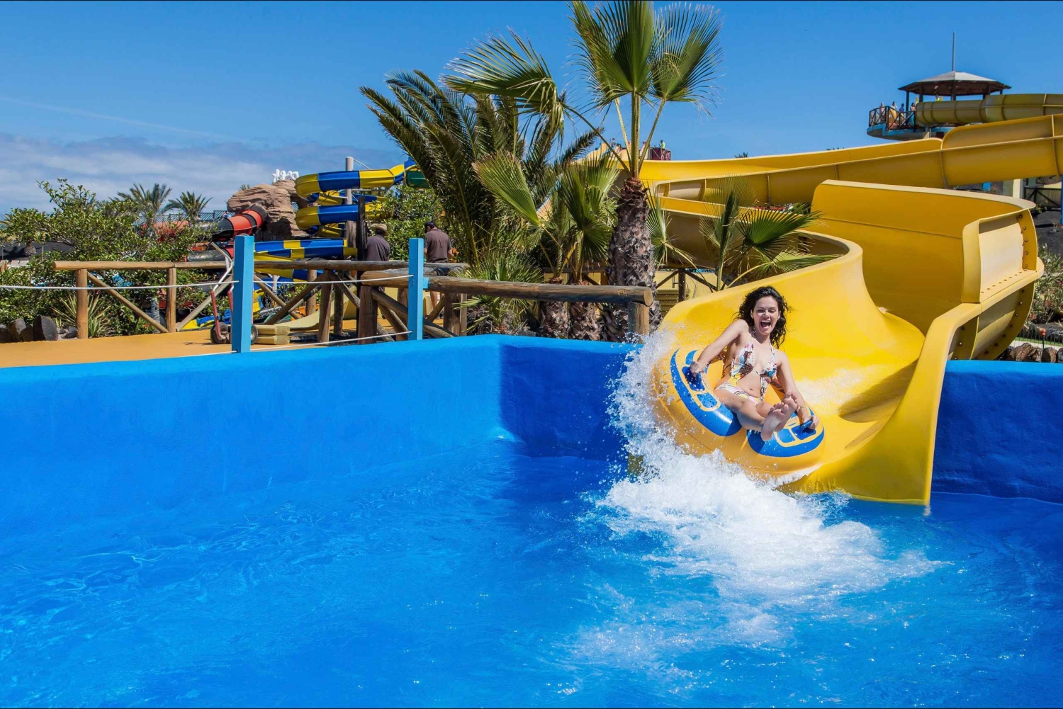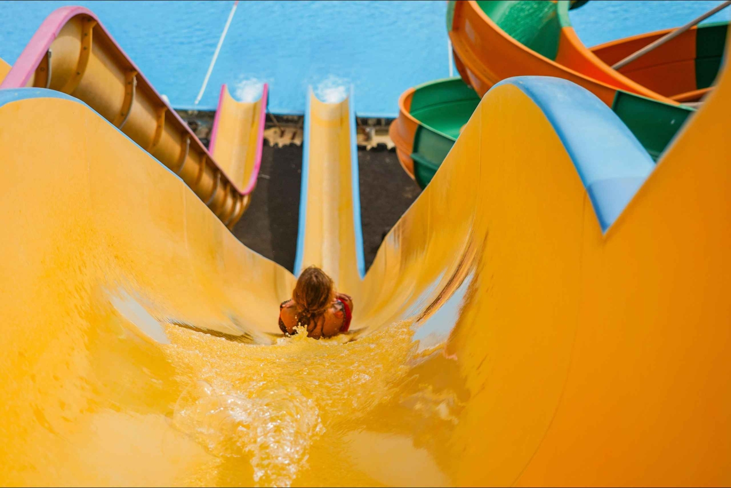 - Känn det svala vattnet rusa runt dig nerför en rutschkana