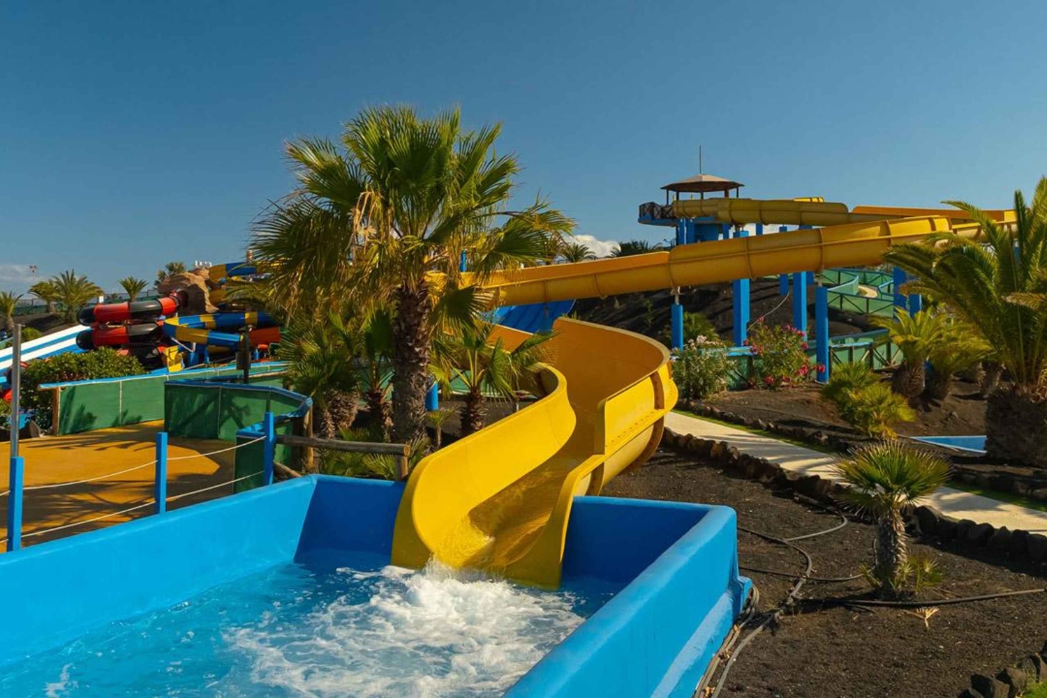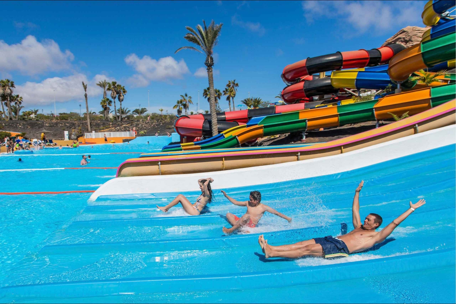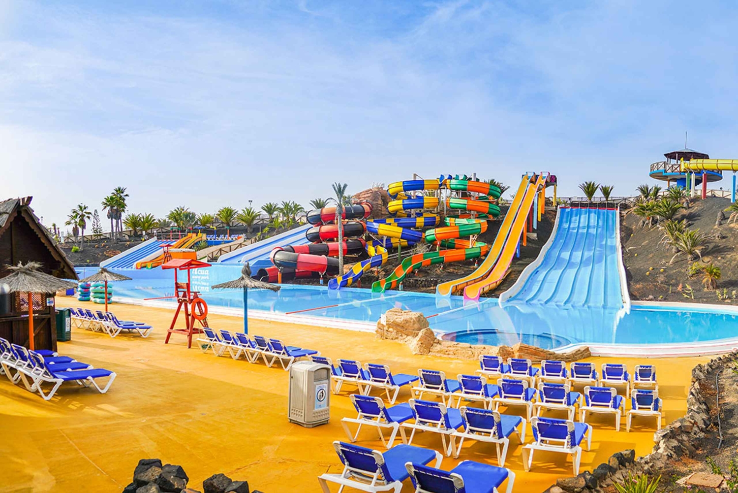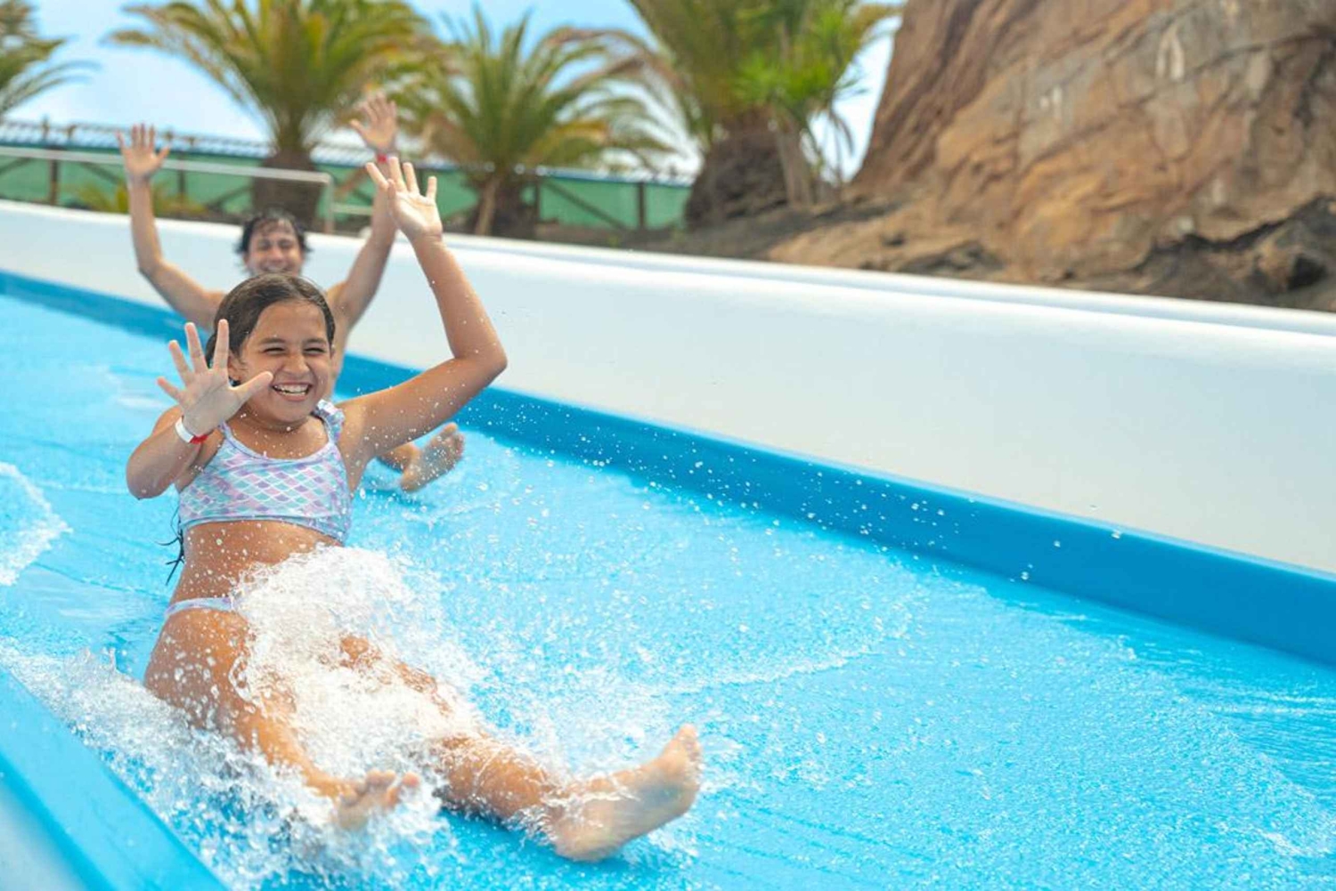 Ha en rolig dag ute med hela familjen med denna inträdesbiljett till Corralejos Acua Water Park. Skjut, plaska och swoosh ner eller längs 14 olika attraktioner i vattenparken. Njut av läckra måltider i matsalen, släpp lös barnen i barnklubben och utnyttja underhållningsservicen i hela parken. Få ut det mesta av din tid på Fuerteventura i denna vattenpark fylld med över 25 000 kvadratmeter av obegränsat nöje. Simma, ät och drick och lek i de många tillgängliga alternativen i parken. Koppla av vid poolerna, glid ner för rutschbanor eller smutta på en uppfriskande drink i poolbaren - valet är ditt.Includes